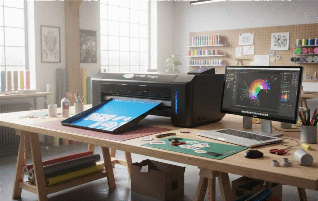 The ARC Sign FSG350 is a high-precision Auto Feeding Cutting Plotter equipped with a powerful servo motor, automatic sheet feeder, and Wi-Fi connectivity—perfect for fast and accurate sticker, label, and packaging sheet cutting.
